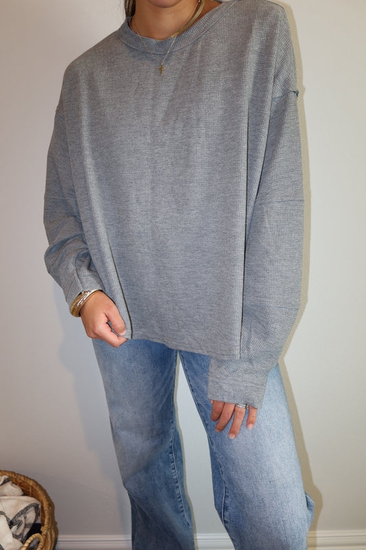 Oversized Waffle Knit Long Sleeve - Gray